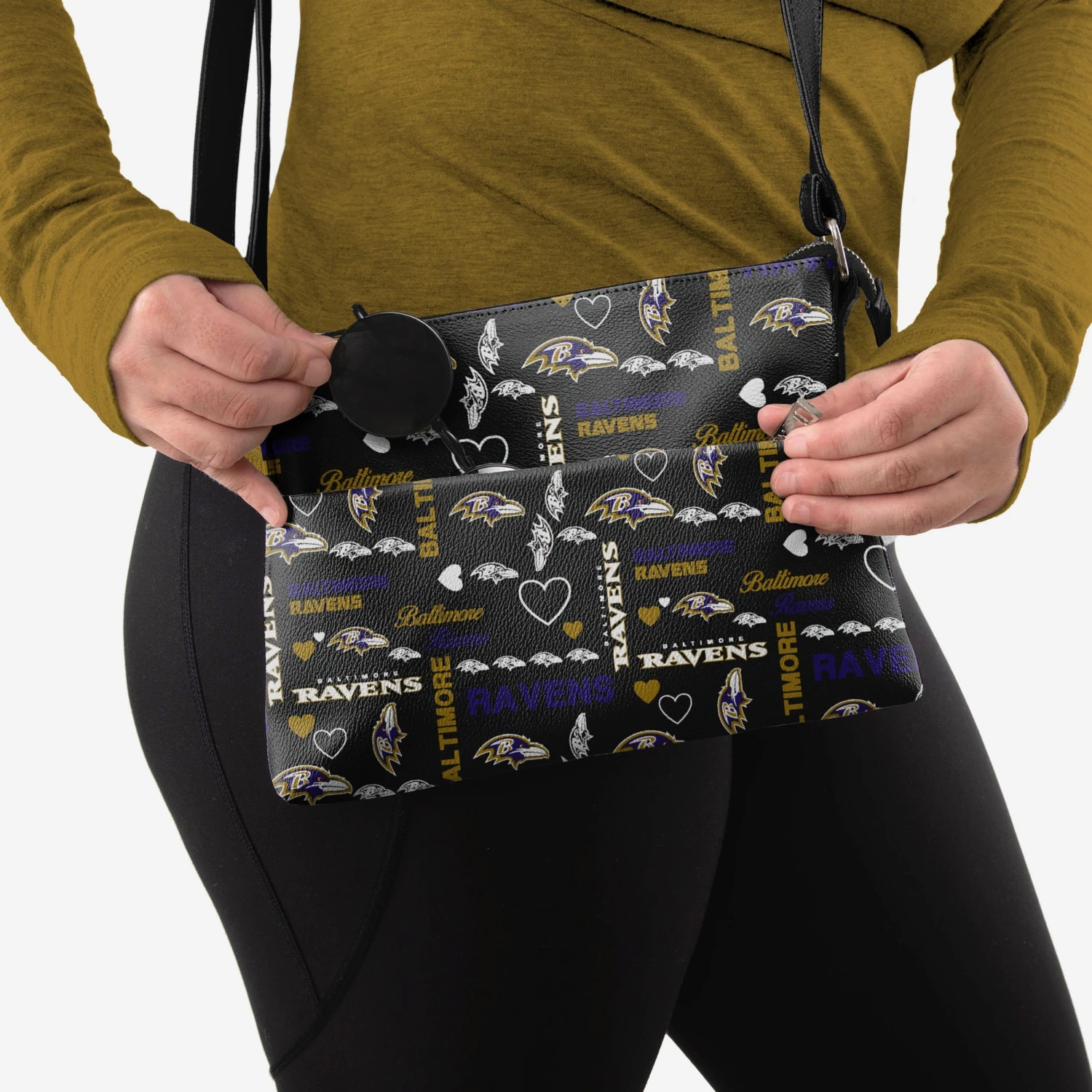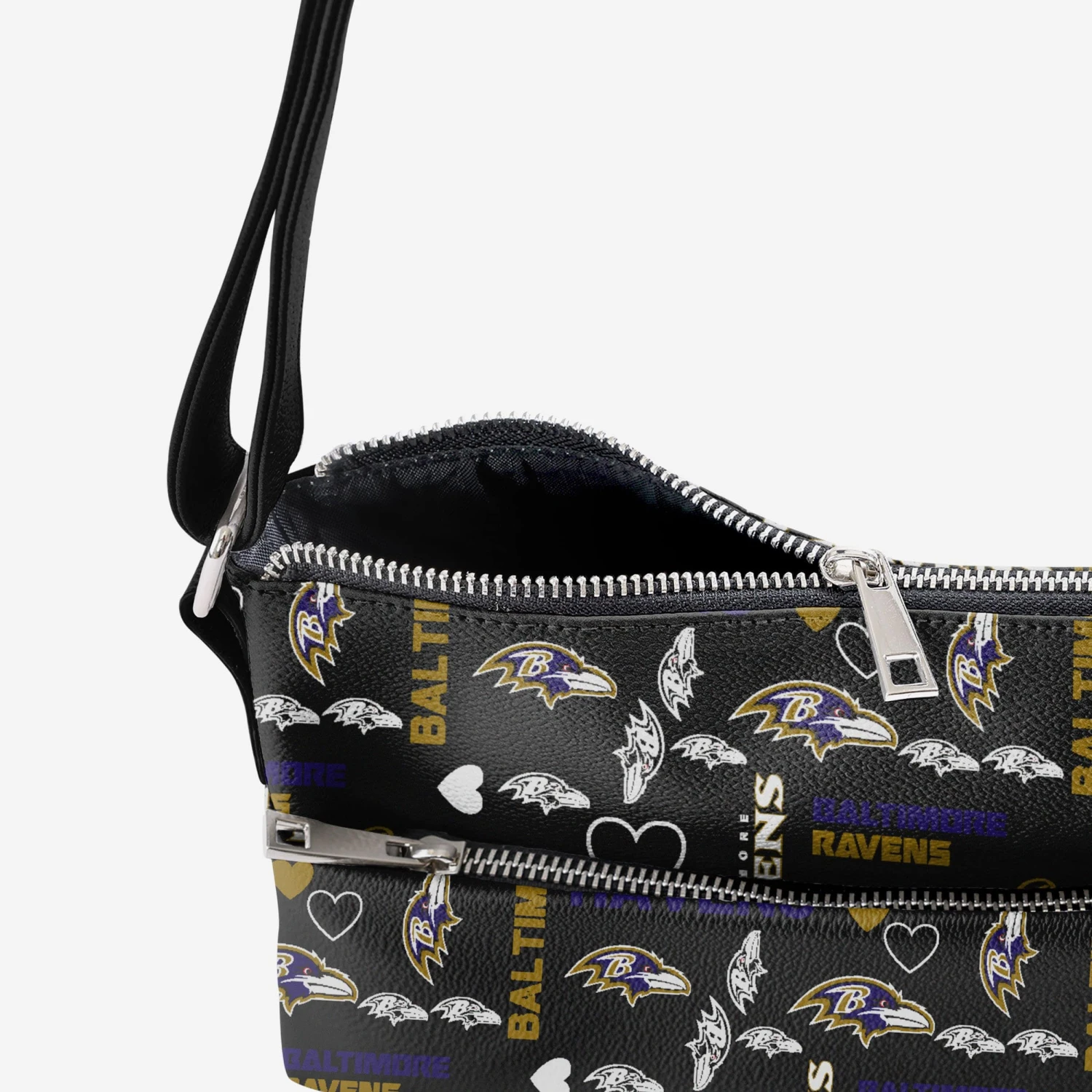 Don’t wear your heart on your sleeve – wear it ACROSS your sleeve every time you rock this Baltimore Ravens Logo Love Crossbody Purse!