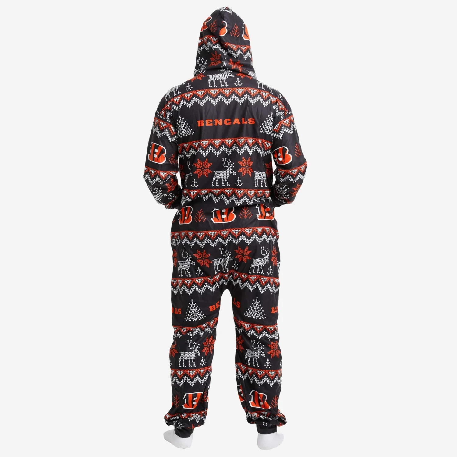 Get some matching family pajamas and dress to impress this holiday season! You won’t want to miss these onesie team pajamas! These men’s and women’s PJ’s are comfortable and show off your team spirit in the form of some sweet one piece jammies. Introducing the Cincinnati Bengals Ugly Pattern One Piece Pajamas! Don’t forget to take your holiday photo with the whole family wearing matching Christmas pajamas!