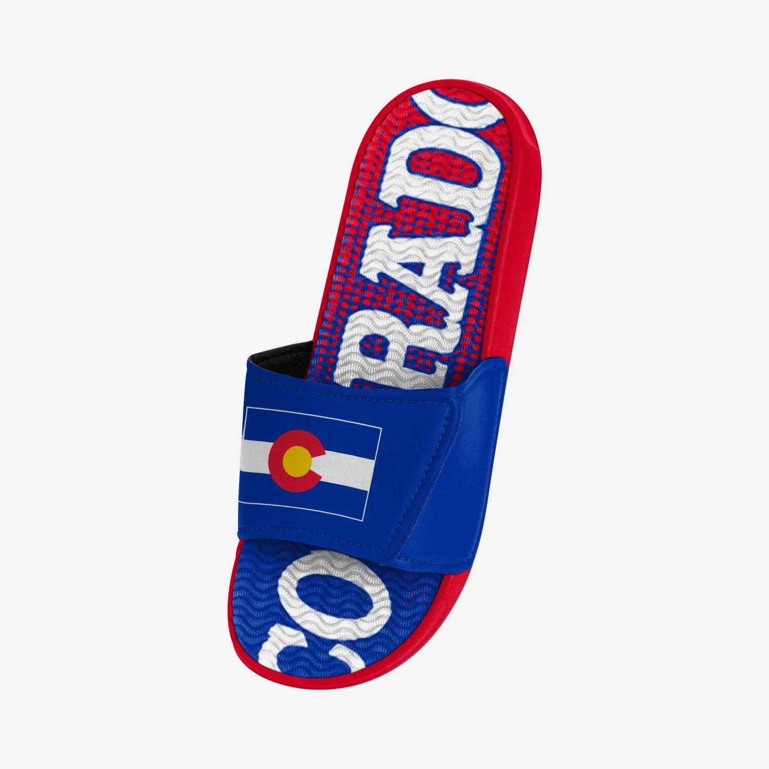 There are 50 states, but you know yours is the best. Make sure everyone else knows it too by repping your state with every step in these Colorado Flag Gradient Wordmark Gel Slides!
