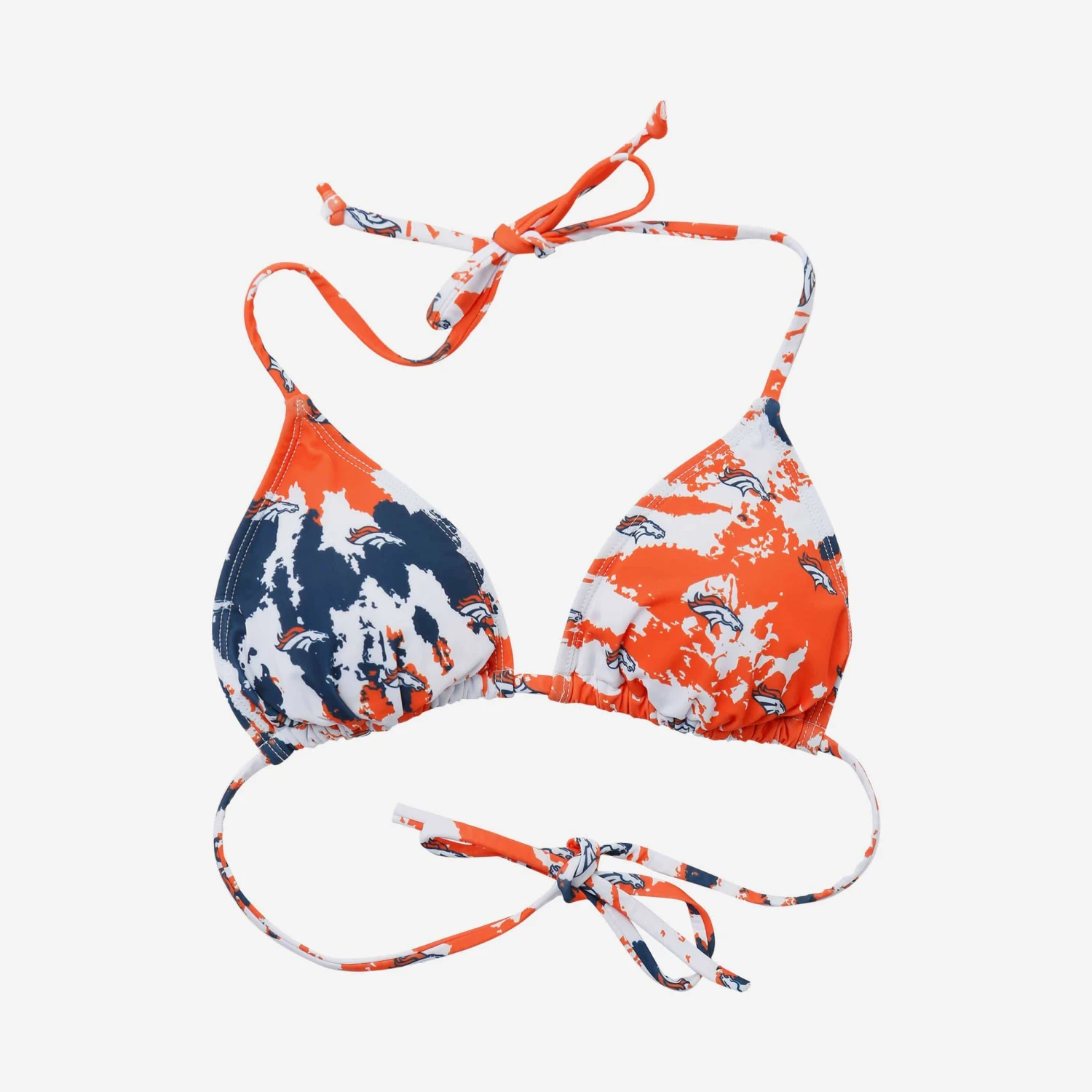 Lounging around on a summer day? Make sure everyone knows your fandom doesn’t take a vacation by wearing this Denver Broncos Women’s Paint Splash Bikini Top!