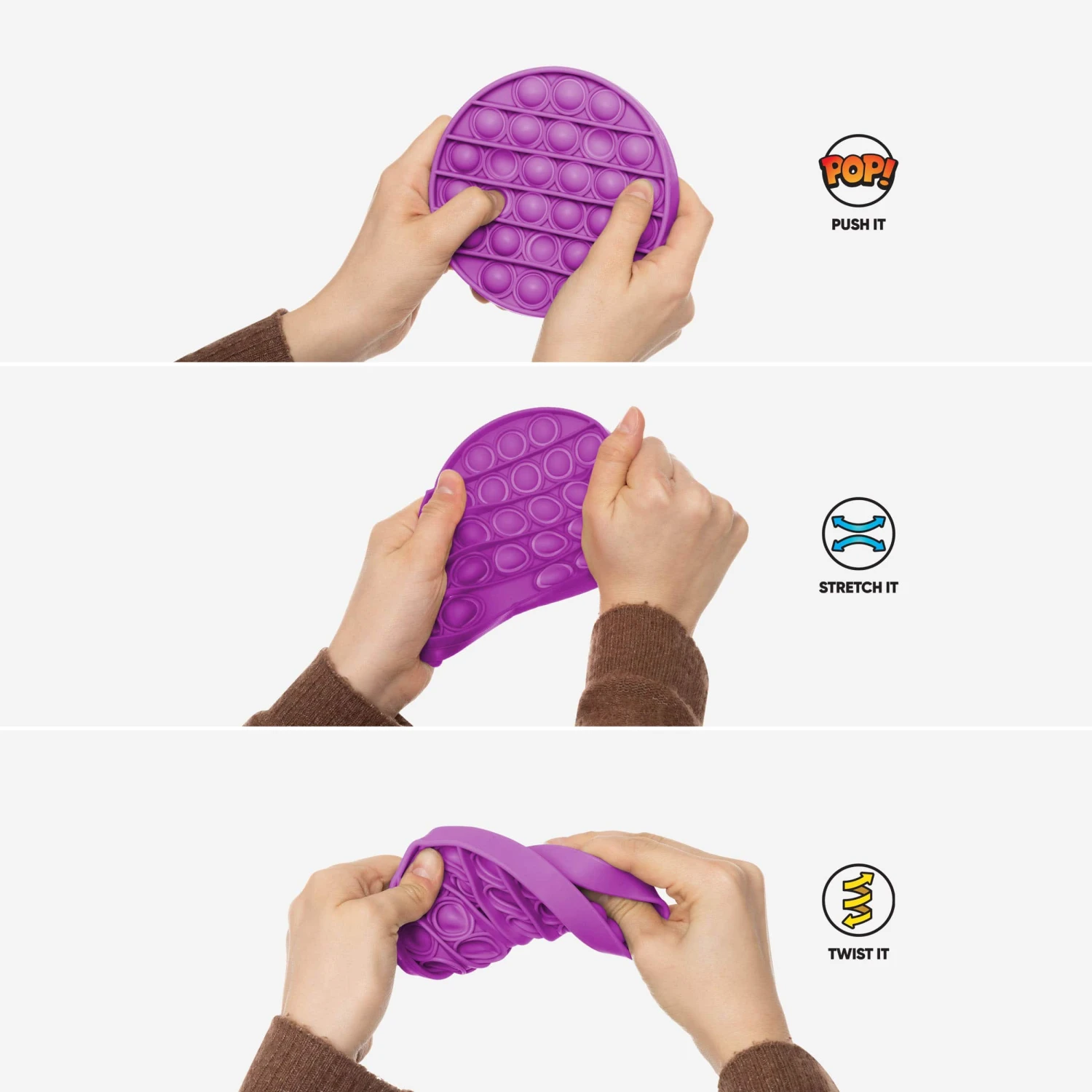 - Three-pack of vibrant colored fidget popper toys in fun shapes that will put a smile on any face