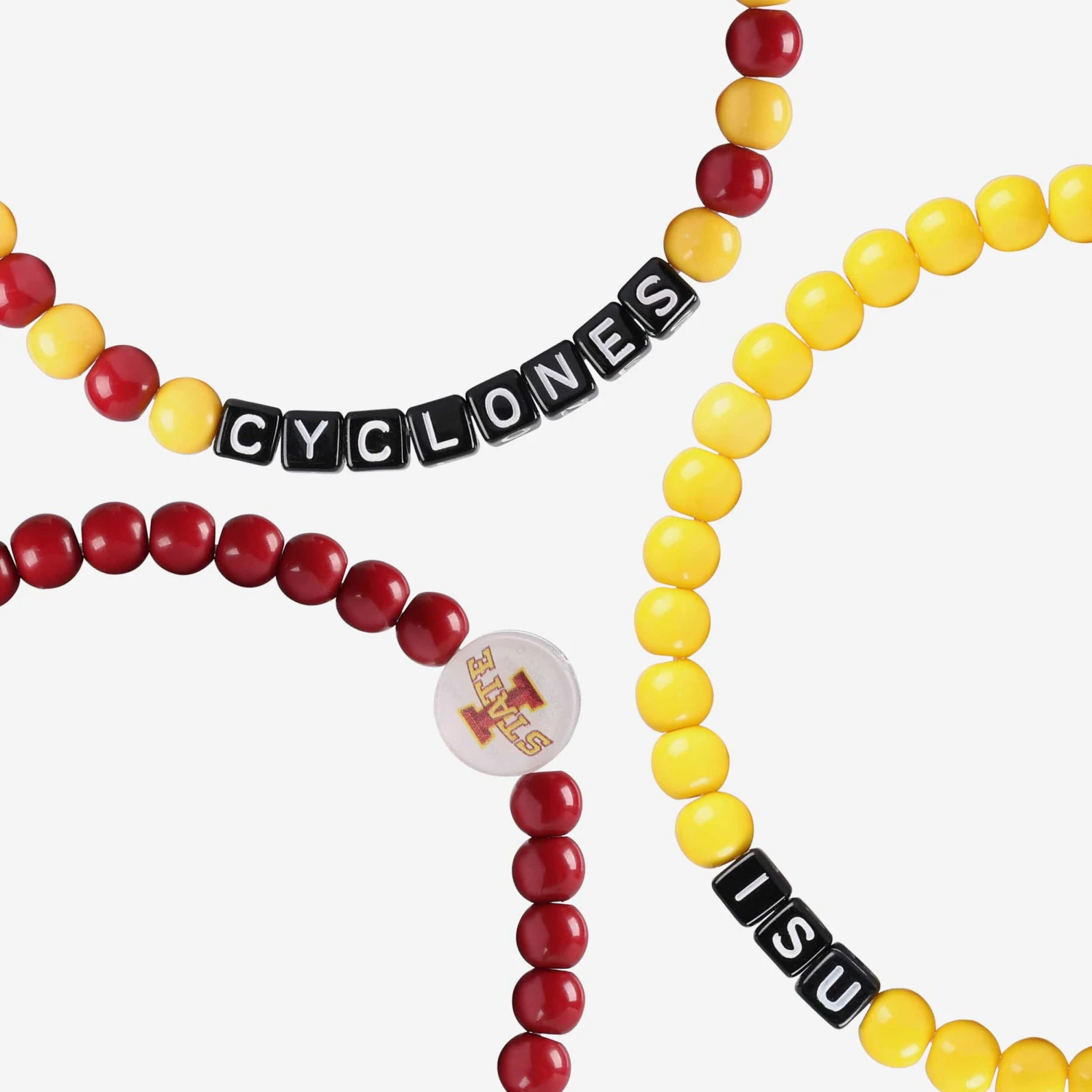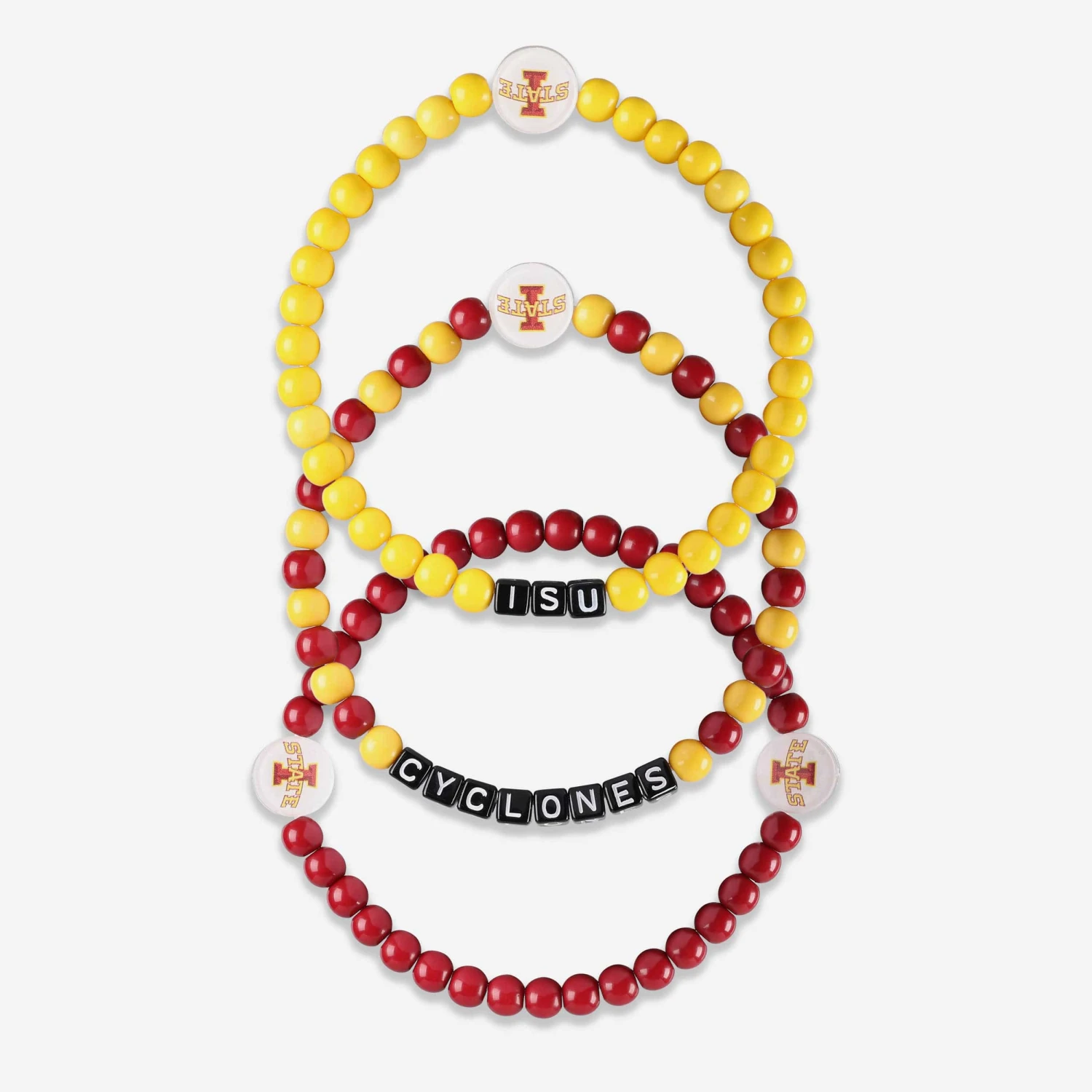 A whole new way to rep the team in style is here. Step up your fan fashion sense with this Iowa State Cyclones 3 Pack Beaded Friendship Bracelet. These matching friendship bracelets have an all-over team-colored design and team logo displays, which makes them the perfect way to show your support for the Iowa State Cyclones on gamedays and every day in between.