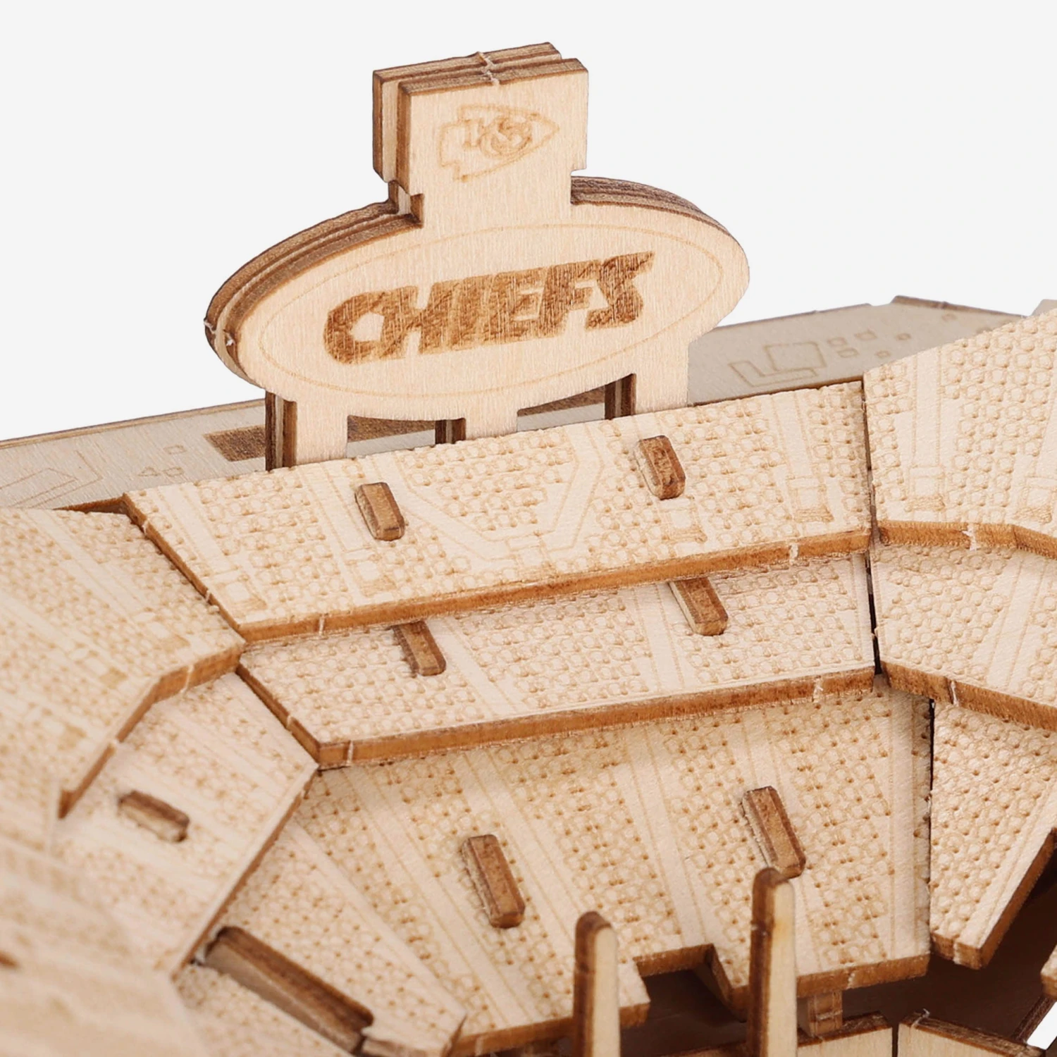 All the fun of gameday at the stadium, none of the postgame traffic and lines for the bathroom. Build your very own home away from home with this Kansas City Chiefs Arrowhead Stadium Wood PZLZ Stadium!