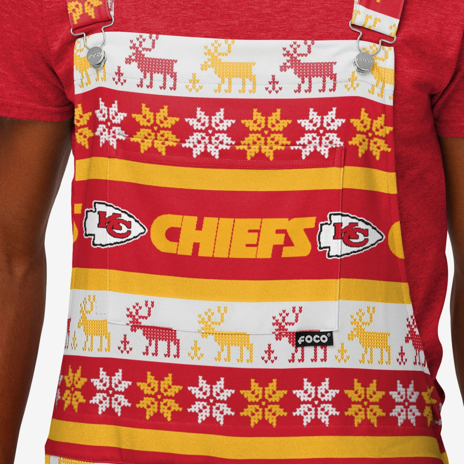 Show your team spirit in these stylish and comfortable Kansas City Chiefs Men’s Ugly Home Gating Bib Overalls. With their all-over team-colored design and bold team logo display, these overalls are the perfect way to show your support for the Kansas City Chiefs while showing off some beautiful style akin to your favorite ugly sweater that’s perfect for the holidays, but will help you stand out year-round.
