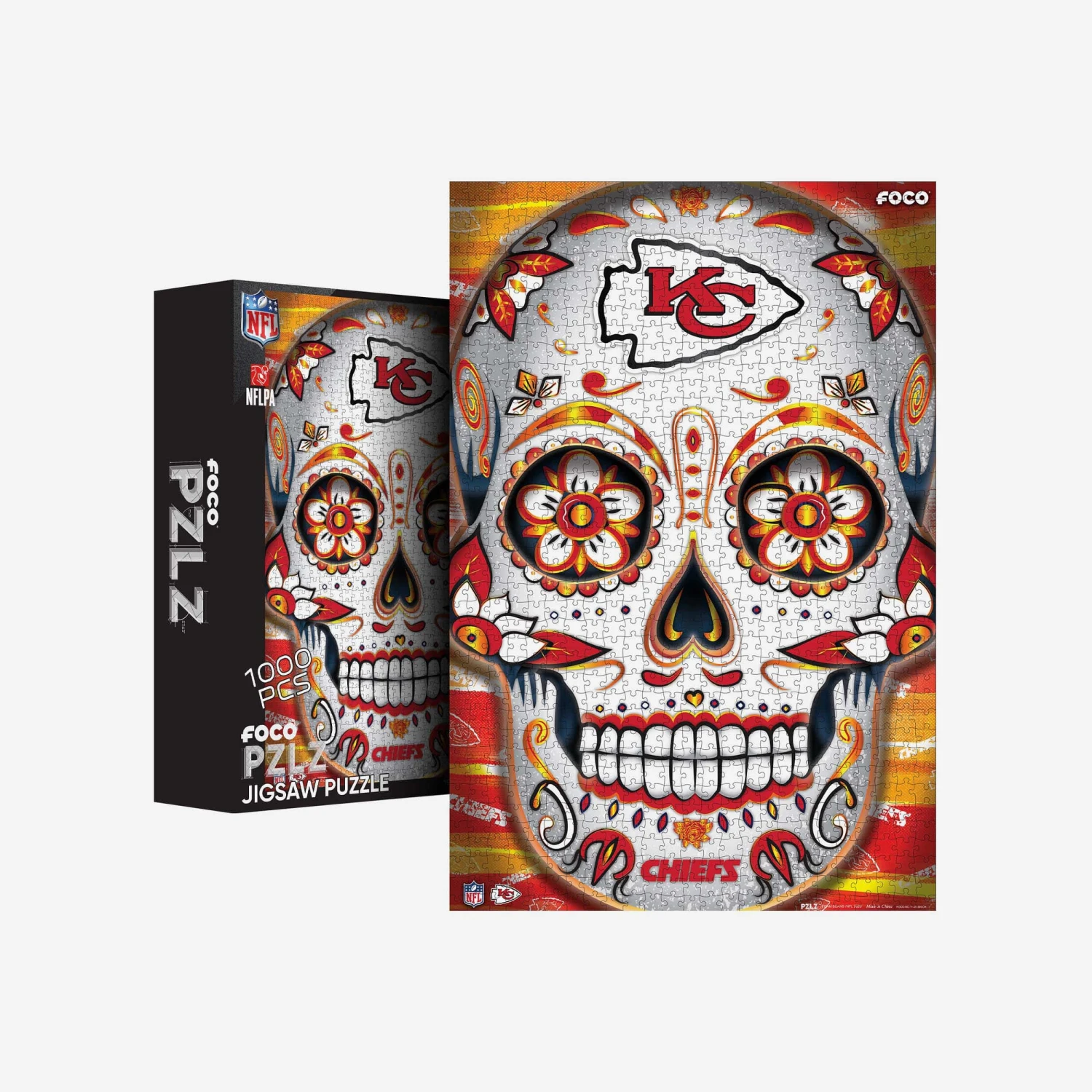Piece and love! This Kansas City Chiefs Sugar Skull 1000 Piece Jigsaw PZLZ is the perfect stay-at-home fun for the whole family.