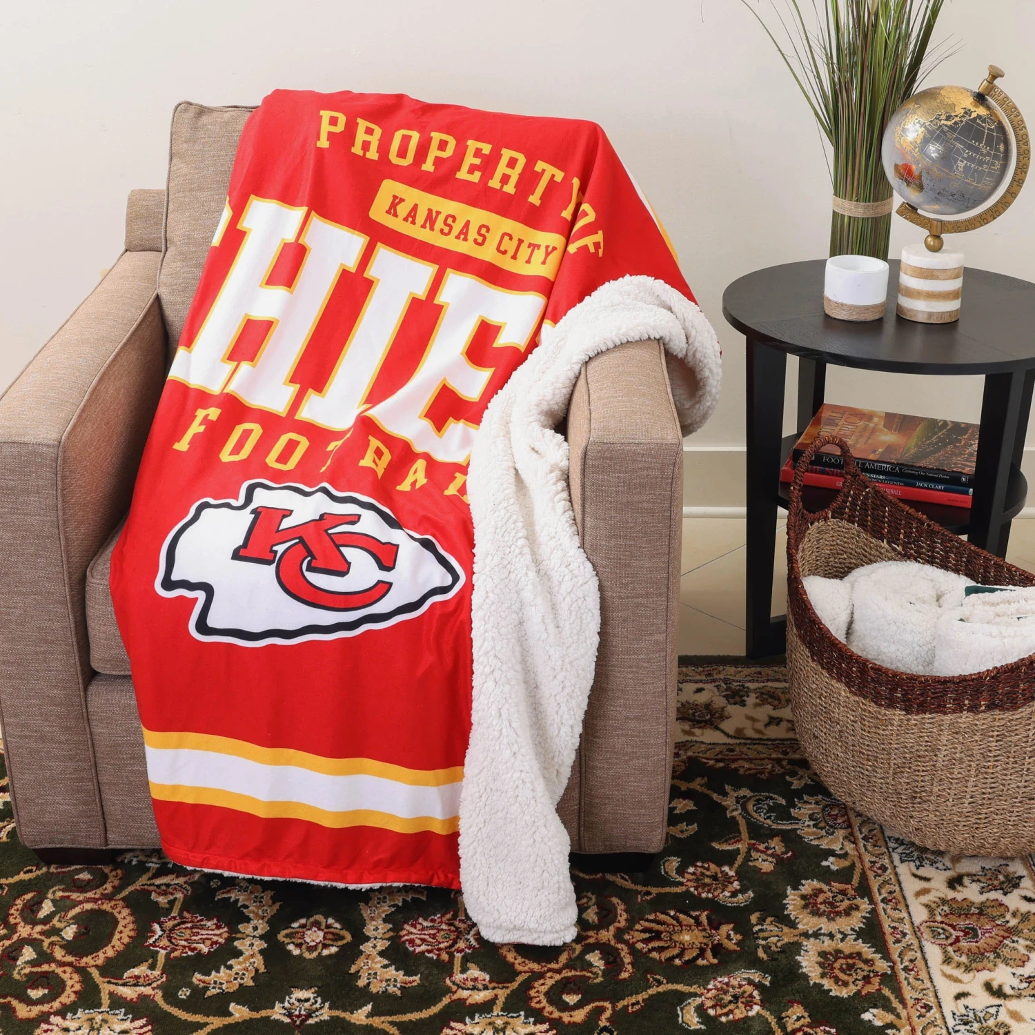 Property of the best fan in town! Enjoy a relaxing day in the fancave watching your team on TV with this Kansas City Chiefs Team Property Sherpa Plush Throw!