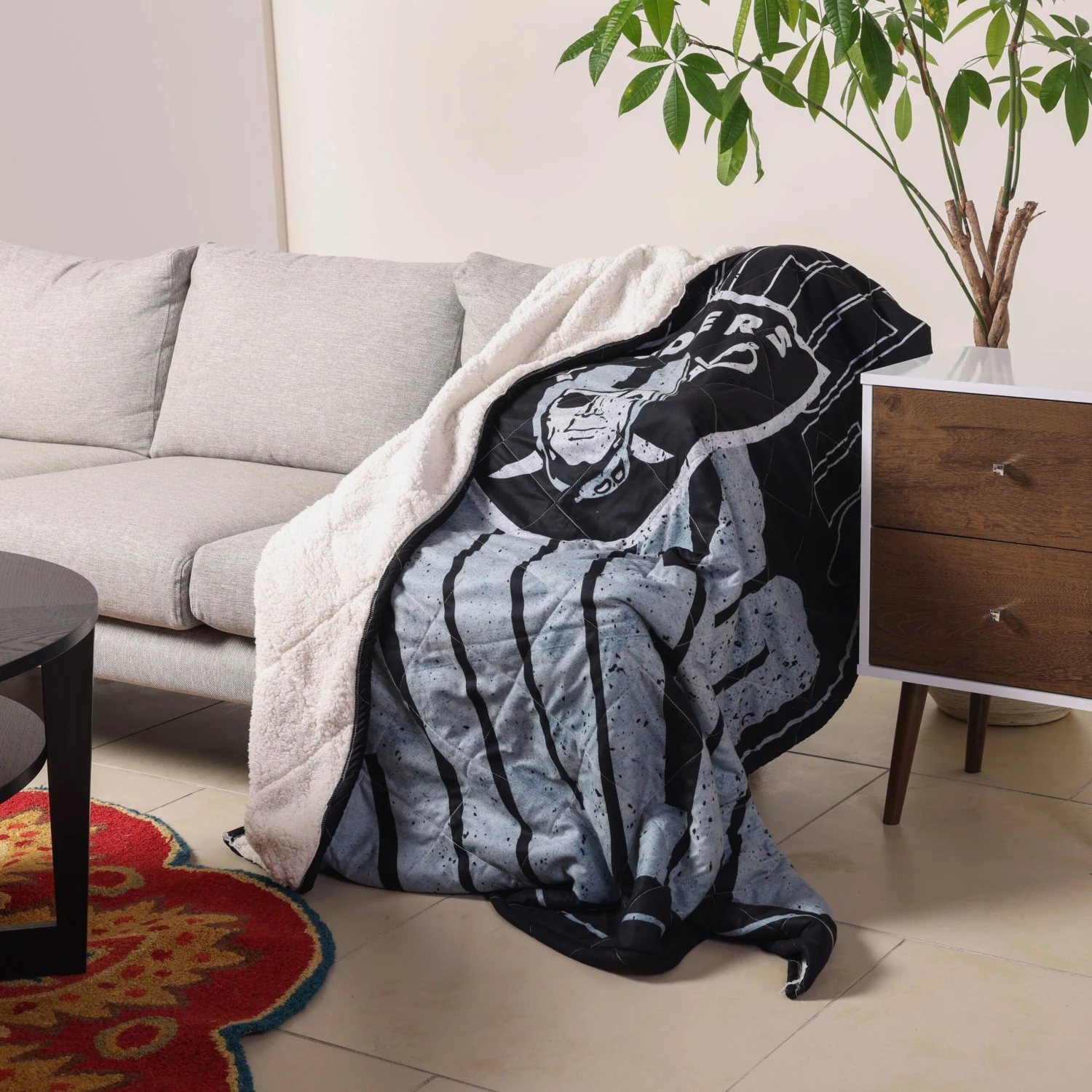 Go big or go home? No – Go big AT home! Make a big, bold statement on who you’re rooting for on gameday by relaxing under this Las Vegas Raiders Big Game Sherpa Lined Throw!