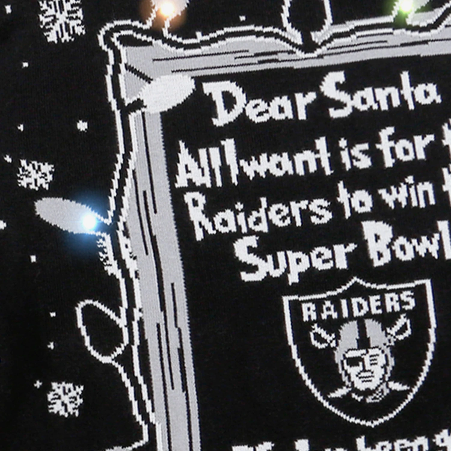 The holidays are coming, and you need a nice holiday sweater so Santa knows you belong on the nice list this year. This Las Vegas Raiders Dear Santa Light Up Sweater is here to help, whether you’re wrapping some gifts or being the star of the Christmas sweater party!