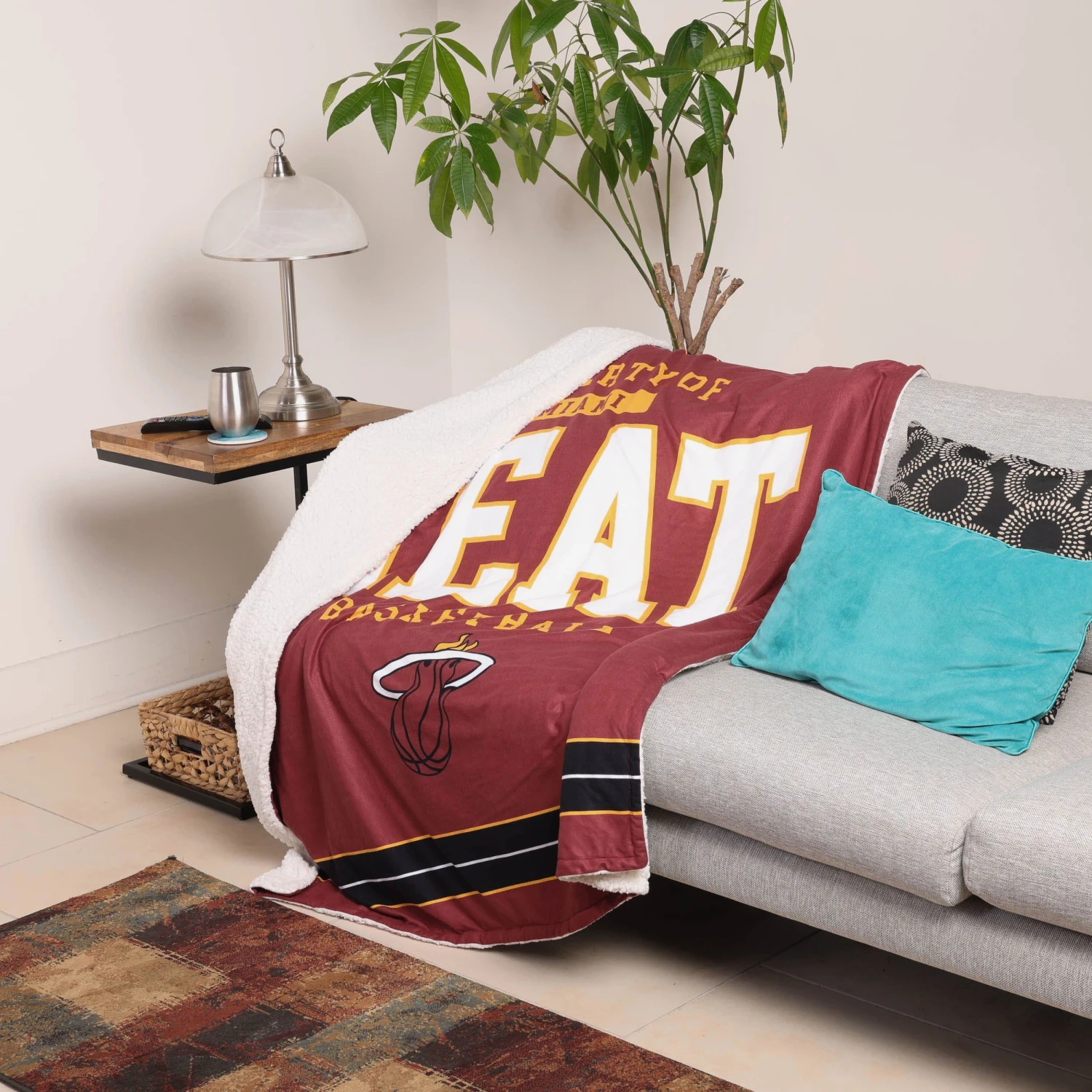 Property of the best fan in town! Enjoy a relaxing day in the fancave watching your team on TV with this Miami Heat Team Property Sherpa Plush Throw!