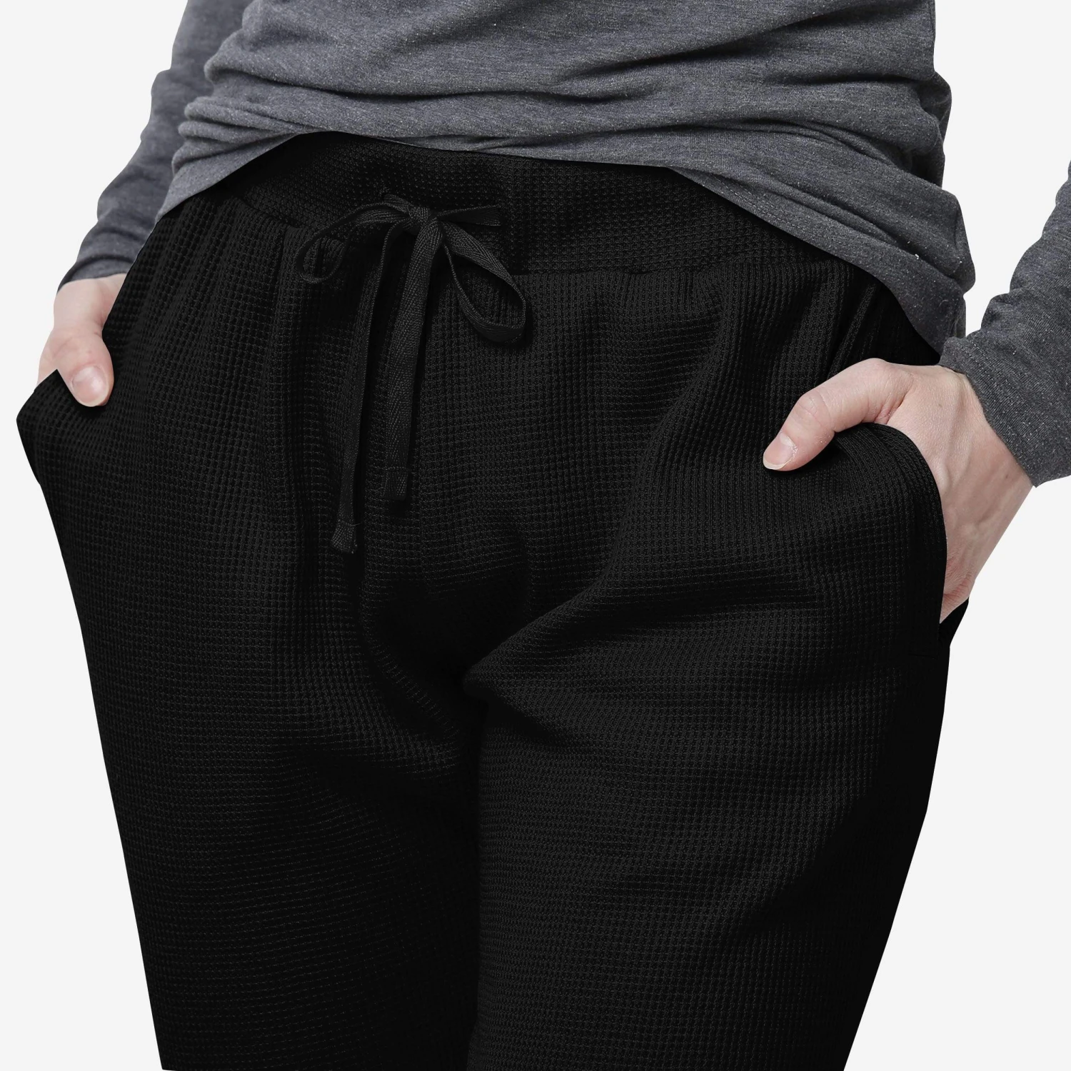 - Durable, waffle-knit sweatpants construction for warmth and comfort