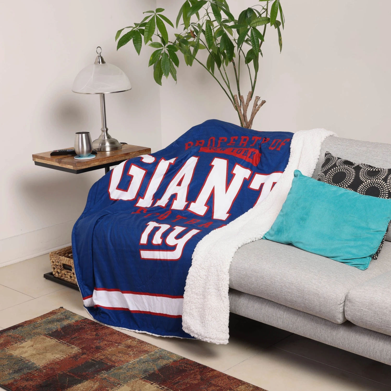 Property of the best fan in town! Enjoy a relaxing day in the fancave watching your team on TV with this New York Giants Team Property Sherpa Plush Throw!