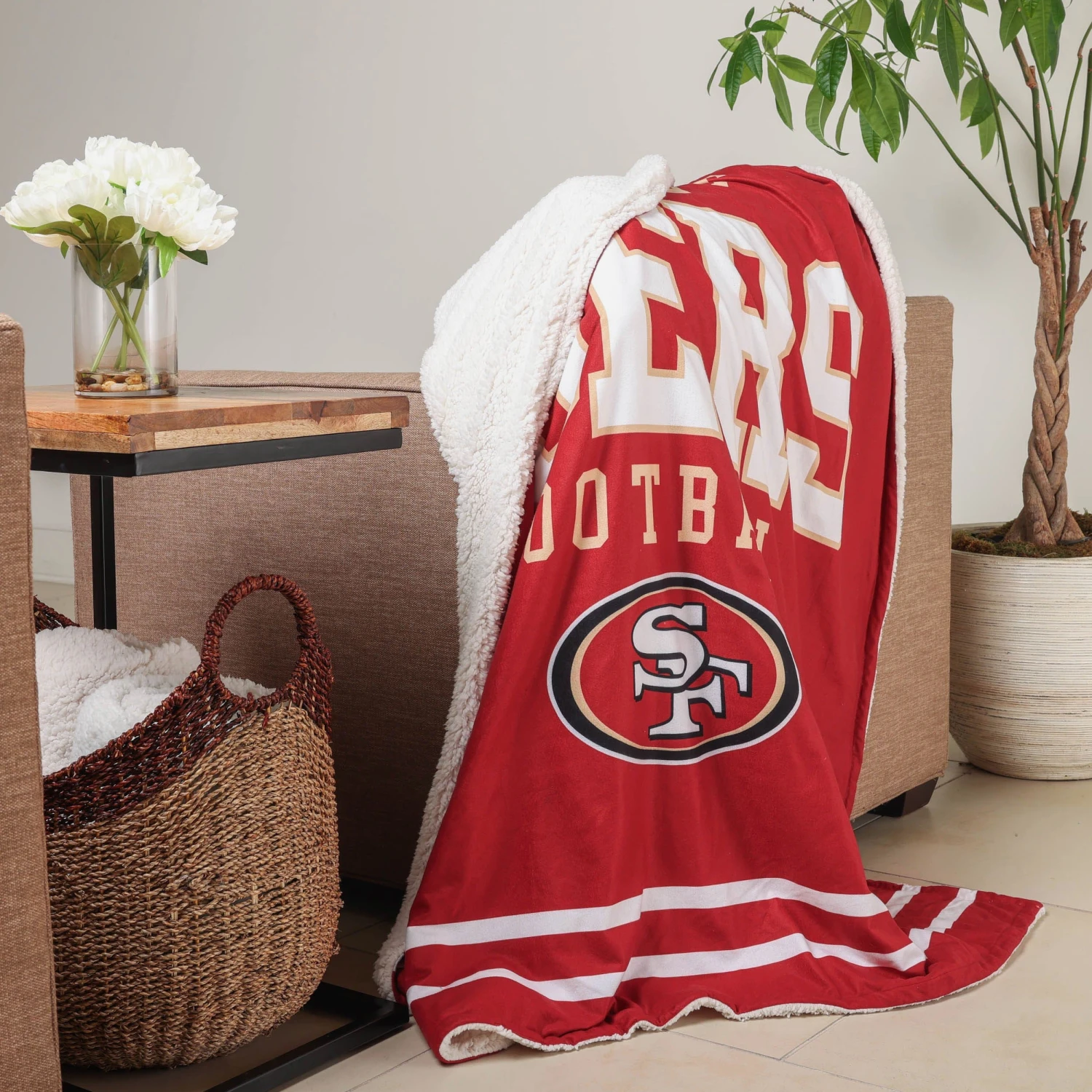 Property of the best fan in town! Enjoy a relaxing day in the fancave watching your team on TV with this San Francisco 49ers Team Property Sherpa Plush Throw!