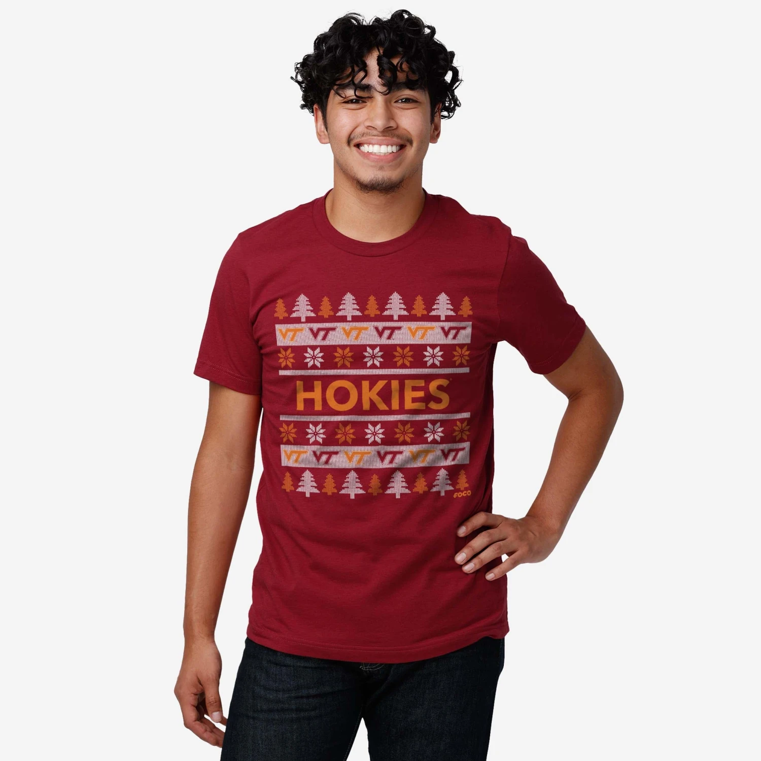 - Festive, team-colored design: This traditional t-shirt shows off the official Virginia Tech Hokies colors in an all-over team-colored design with winter tree and snowflake accents, so you can show your team spirit with pride.
