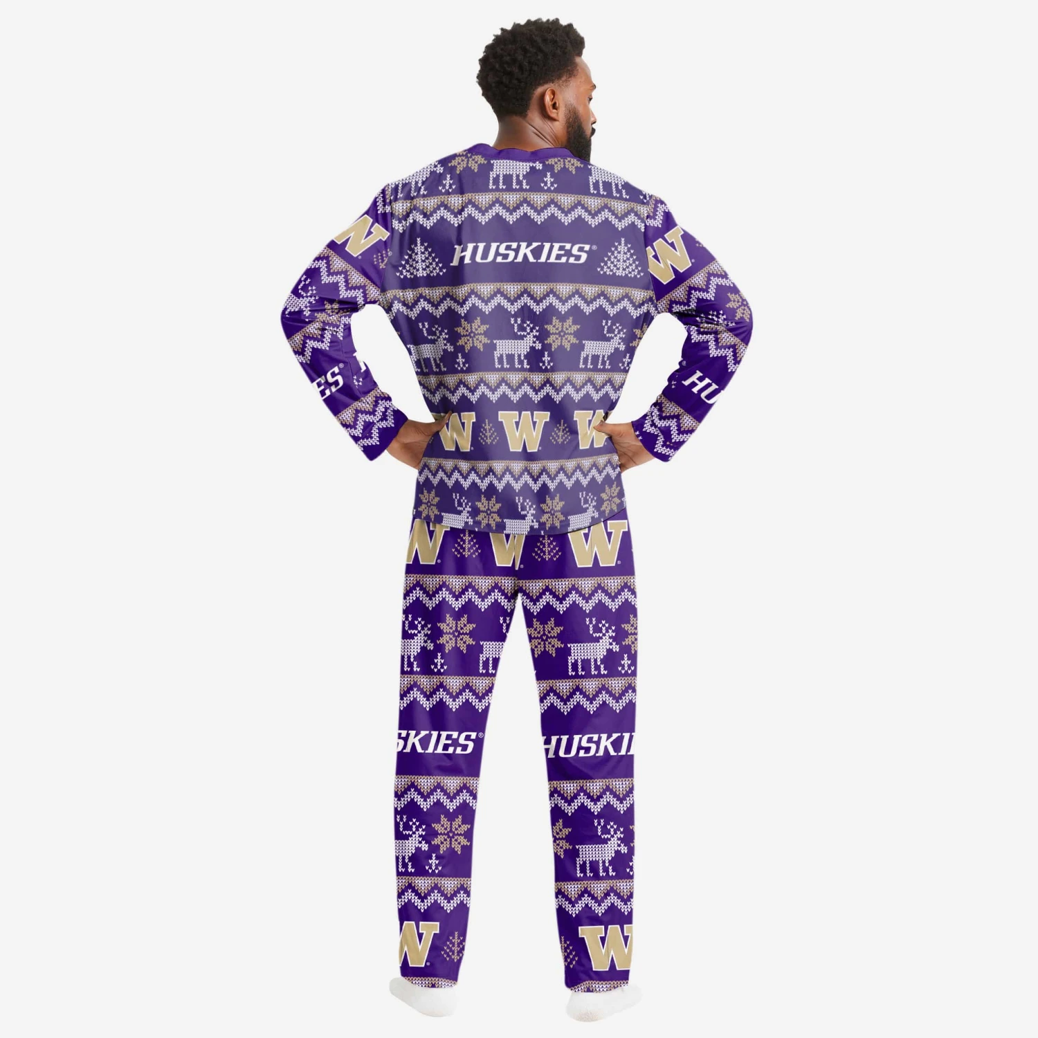 Get some matching family pajamas and dress to impress this holiday season! You won’t want to miss these men’s team pajamas! These men’s PJ’s are comfortable and show off your team spirit in the form of some sweet men’s jammies. Introducing the Washington Huskies Ugly Pattern Family Holiday Pajamas! Don’t forget to take your holiday photo with the whole family wearing matching Christmas pajamas!